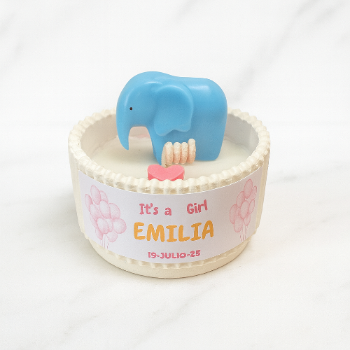 ✅¿Qué recibes?✨ Vela aromática en una maceta rayada con un elefantito tiernamente montado en cera📦Caja de acetato 🎀Moño 🏷️Etiqueta personalizada